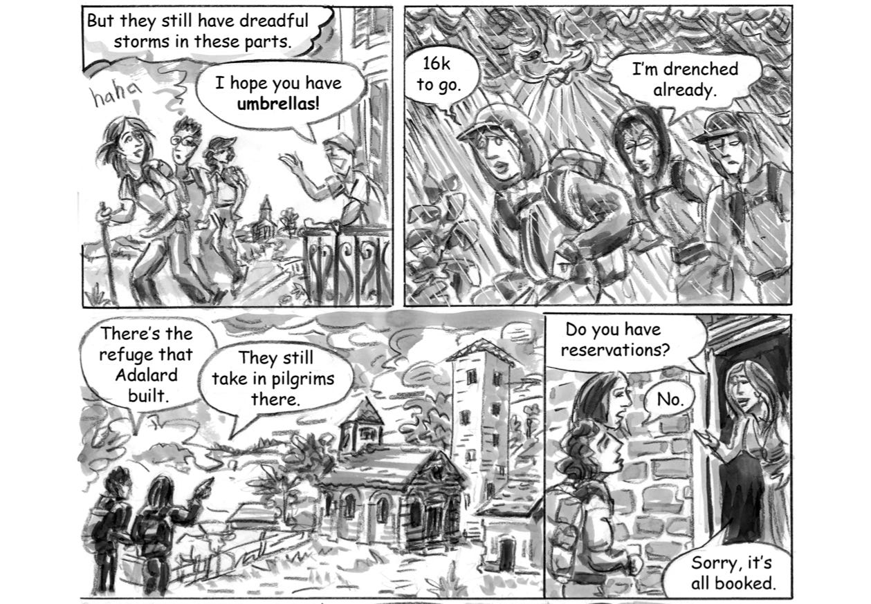 Image: From a graphic novel in progress, Walk this Way, by Sabrina Jones, about what a cartoonist learned on her way to Santiago