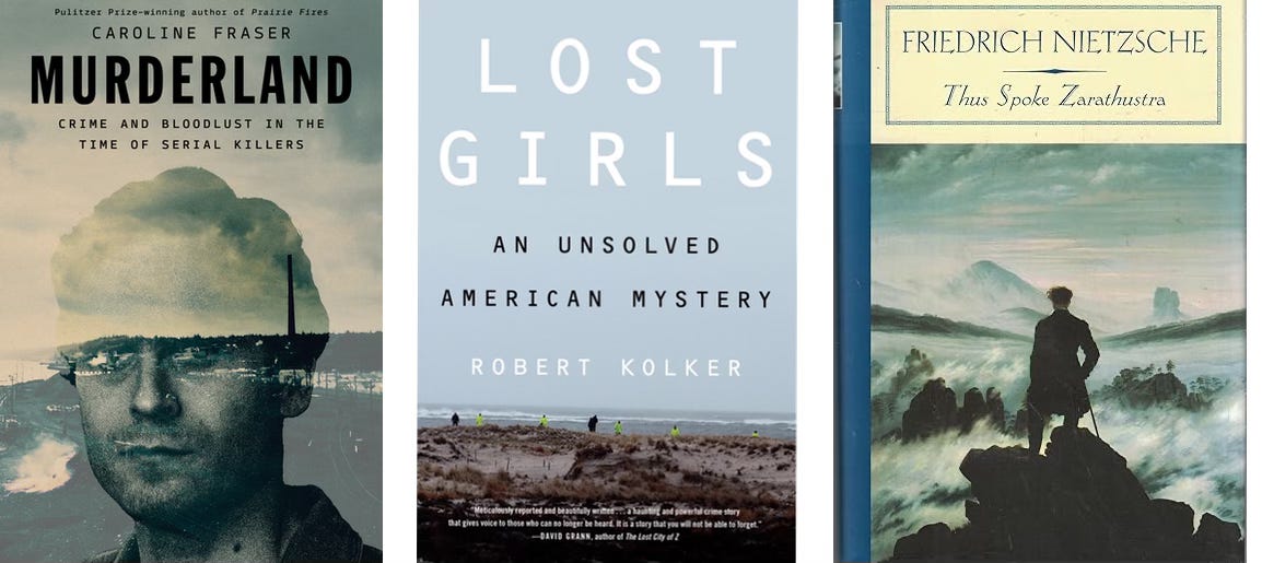 Lacking a thirst for punishment, I’ve avoided the genre, except for a few off-the-wall outliers, like Ed Sanders’s The Family, about Charles Manson, which I love mostly because it’s full of sentences like “The gun collector in the band was on an LSD Spirit of Nonviolence trip and decided to throw away his machine gun so he gave it to Donkey Dan” (Sanders founded the journal Fuck You/ A Magazine of the Arts). I checked out a couple of recent true crime books—Tom O’Neill’s Chaos: Charles Manson, the CIA, and the Secret History of the Sixties, and Robert Kolker’s Lost Girls: An American Mystery—to test the thesis. If you haven’t read Chaos, you know much less than you think you do about the Manson murders. Kolker occasionally indulges a hokey lyricism, but both books are for the most part composed in the default workmanlike prose peculiar to popular nonfiction. So it’s not just a genre thing (but I won’t be returning to true crime often; for one thing, there’s too much cat torture).