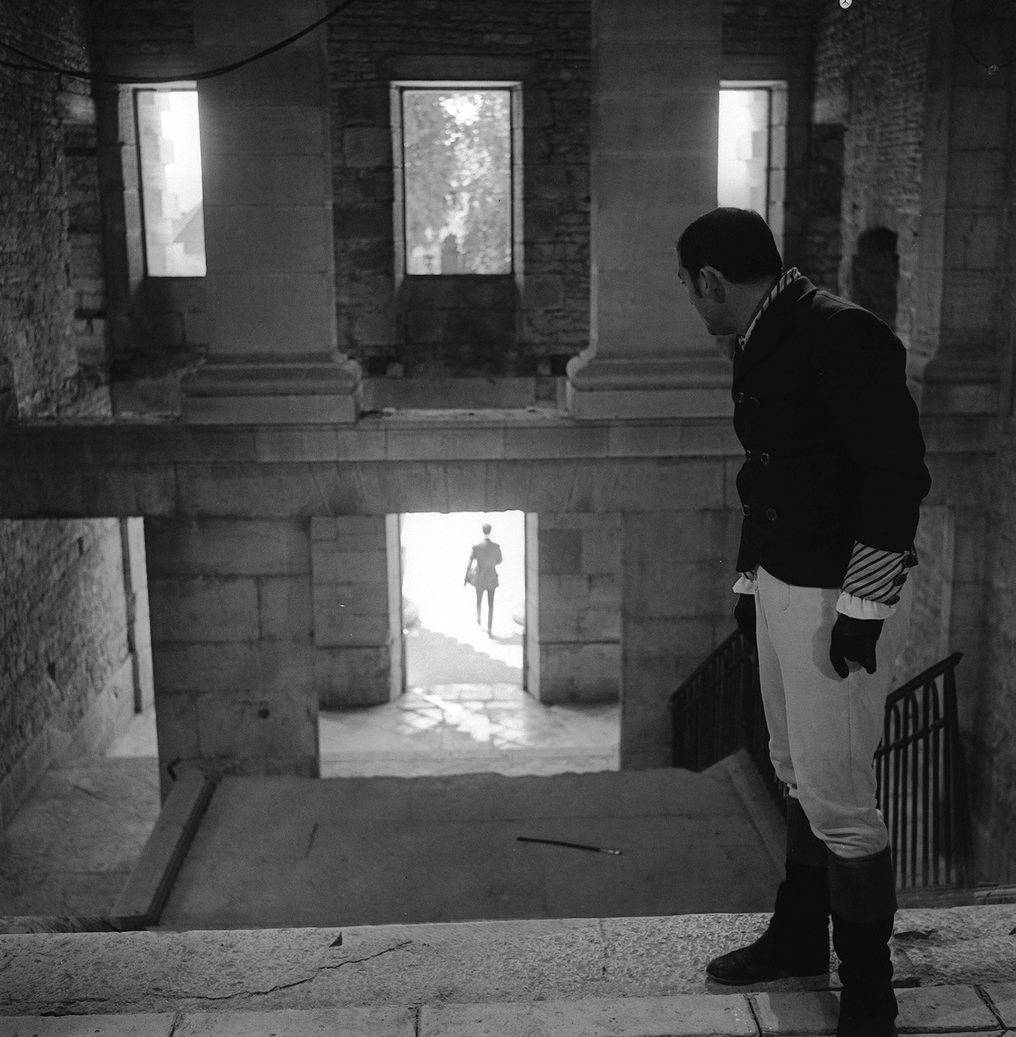 Dom Juan’s valet Sganarelle (Claude Brassuer) in Marcel Bluwall’s 1965 adaptation of Molière's Dom Juan for French television, with Michel Piccoli (Photo by Norbert Perrau\INA via Getty Images)