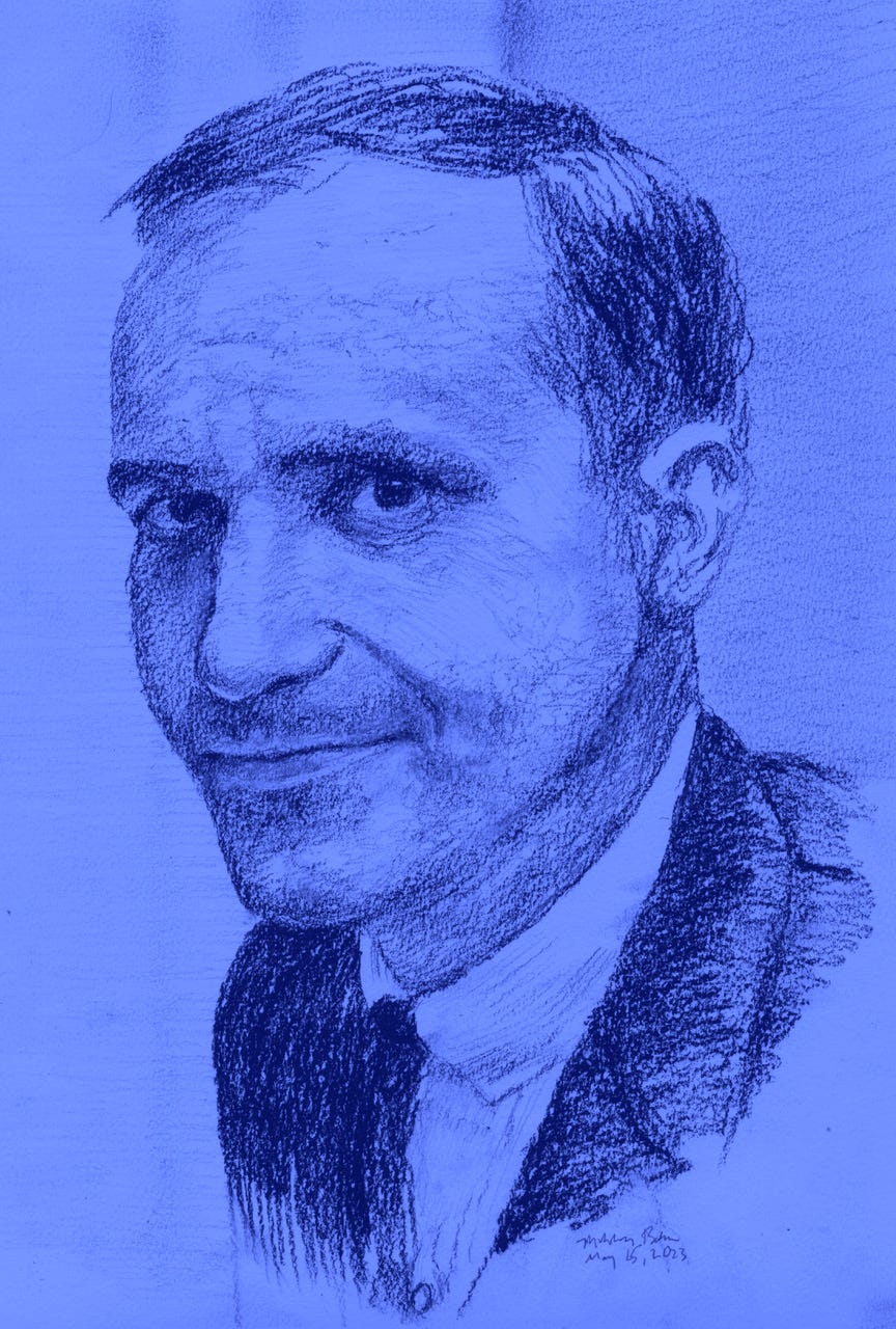 Charles Portis, by Nicholson Baker, after a photograph by Larry Obsitnik for the Arkansas Democrat-Gazette, Special Collections, University of Arkansas, Fayetteville, AR